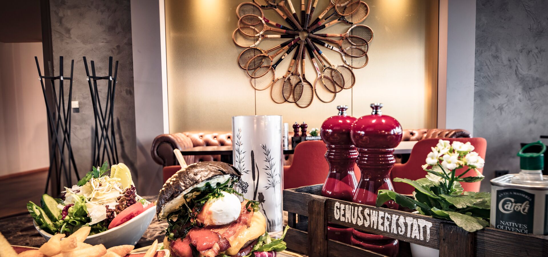 Erleben Sie in der Genusswerkstatt mit Ihren Freunden und Ihrer Familie eine kulinarische Vielfalt mit frischen, teilweise regional angebauten Zutaten in einer gemütlichen und modernen Einrichtung.