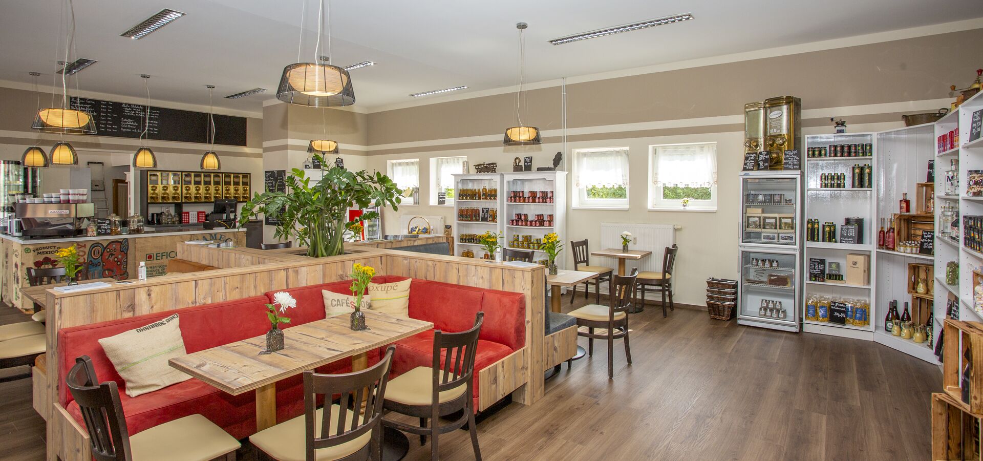 Genießen Sie frisch gebrühten Kaffee, Kaffeespezialitäten, hausgemachtes Eis, frische Backwaren & viele weitere regionale Delikatessen.